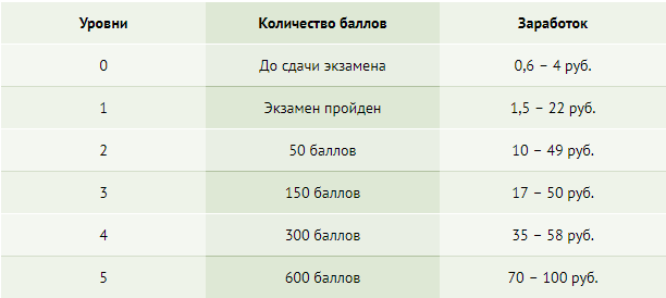 В системе есть возможность повышать квалификацию, накапливайте баллы, и вам будут начисляться дополнительные суммы. Баллы начисляются за действия в сервисе, например, лайки или репосты оцениваются в 0,25 балла, комментарии – 0,5-1 балла; отзывы – 2 балла.